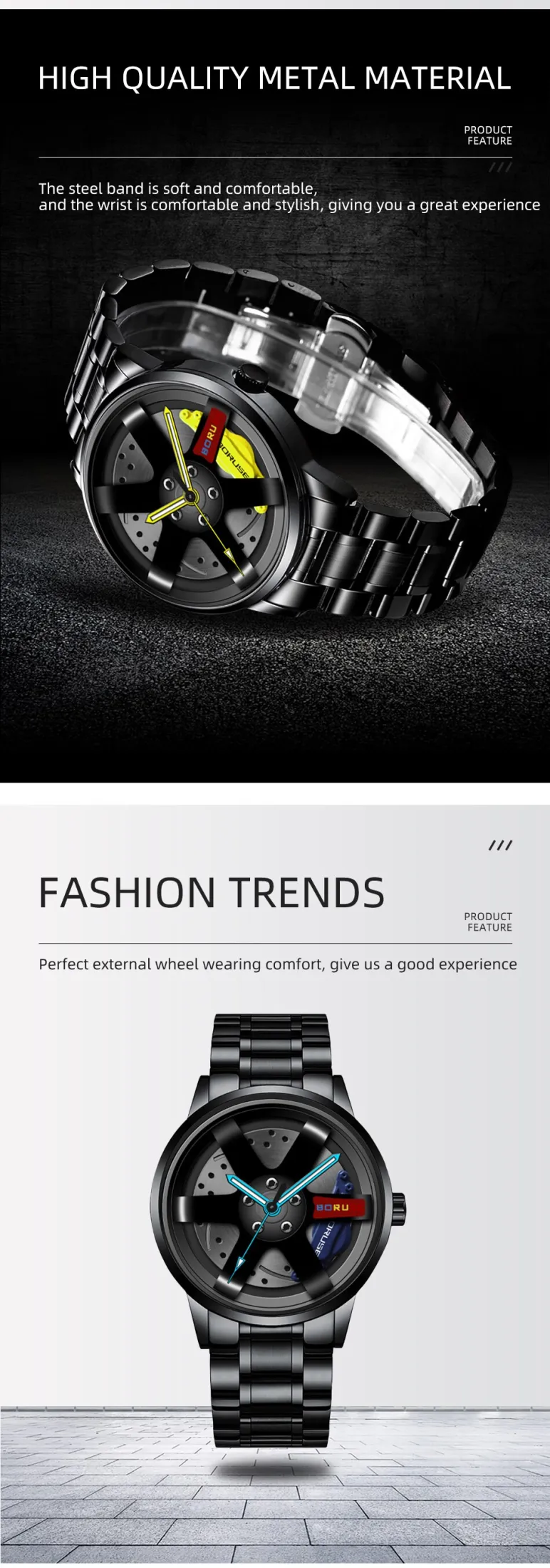 Product details of Fopul mall Stainless Steel Fashion Luxury Mens Car Wheel Casual Watches For Men & Boys Decent Wrist Strap Attractive Dial